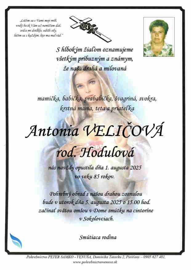 5.8.2025 o 15:00 začína svätou omšou v Dome smútku na cintoríne v Sokolovciach