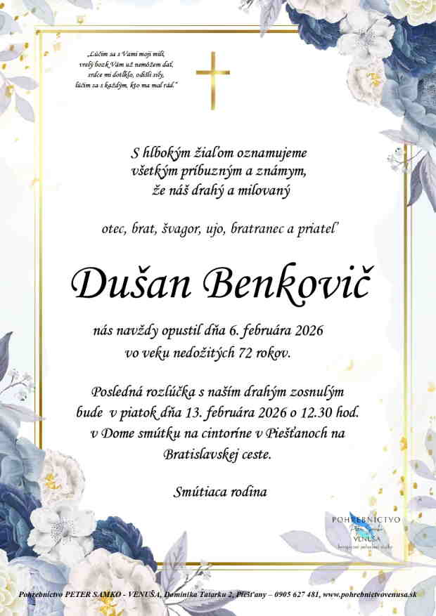 13.2.2026 o 12:30 v Dome smútku na cintoríne v Piešťanoch na Bratislavskej ceste