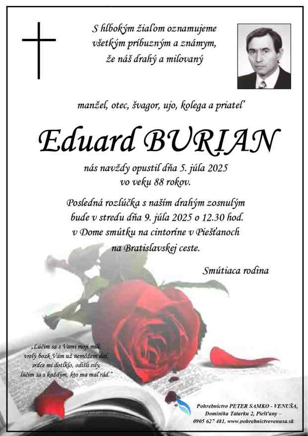 9.7.2025 o 12:30 v Dome smútku na cintoríne v Piešťanoch na Bratislavskej ceste