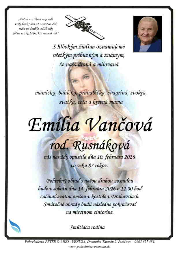 14.2.2026 o 12:00 začína svätou omšou v kostole v Drahovciach