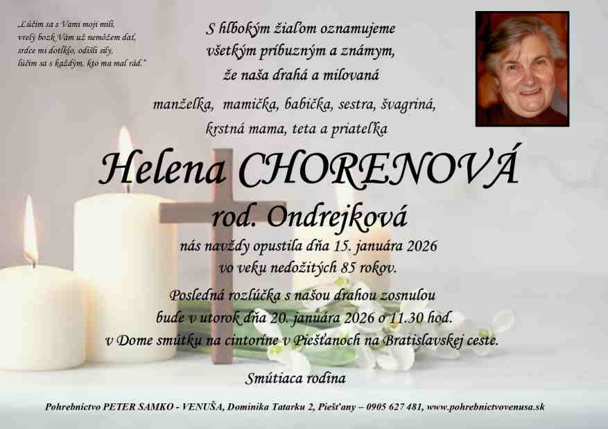 20.1.2026 o 11:30 v Dome smútku na cintoríne v Piešťanoch na Bratislavskej ceste
