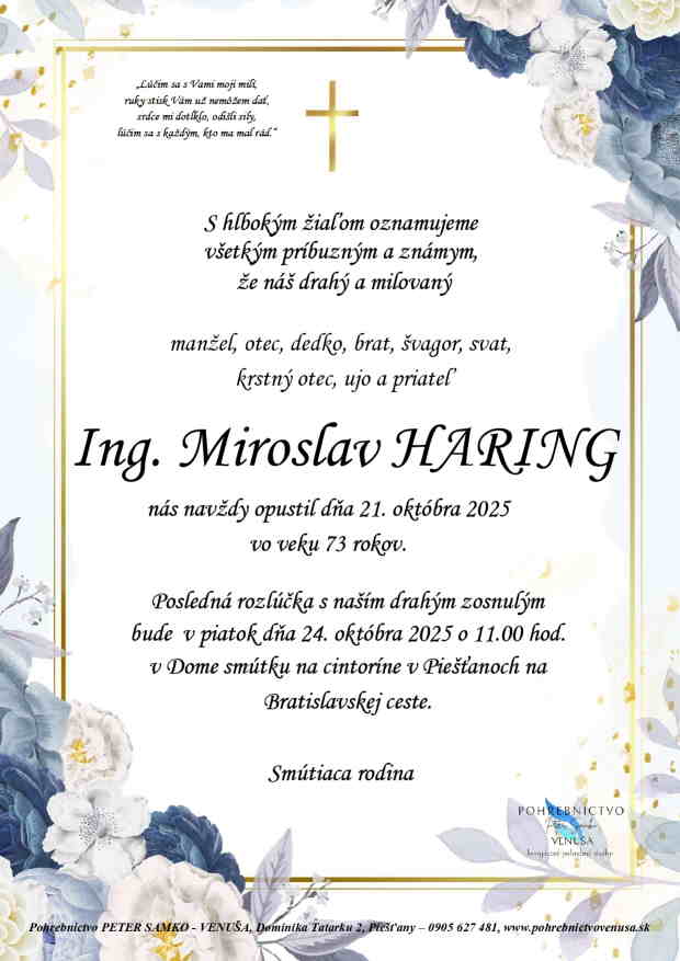 24.10.2025 o 11:00 v Dome smútku na cintoríne v Piešťanoch na Bratislavskej ceste