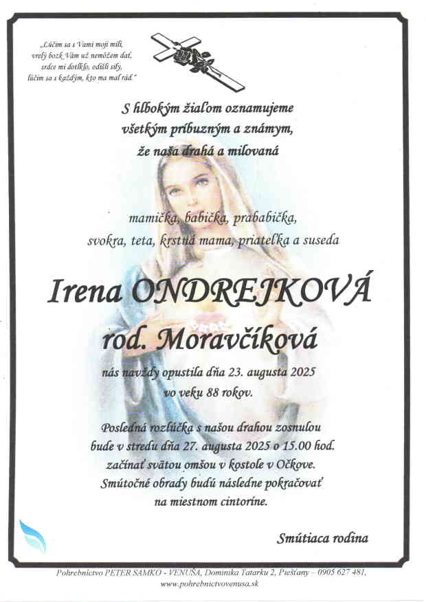 27.8.2025 o 15:00 začína svätou omšou v kostole v Očkove, smútočný obrad následne pokračuje na miestnom cintoríne