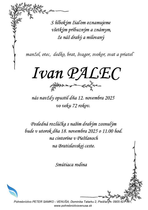 18.11.2025 o 11:00 v Dome smútku na cintoríne v Piešťanoch na Bratislavskej ceste