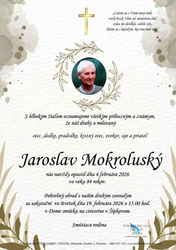 19.2.2026 o 15:00 v Dome smútku na cintoríne v Šípkovom