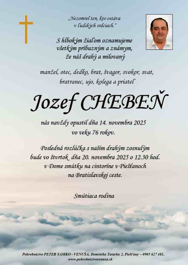 20.11.2025 o 12:30 v Dome smútku na cintoríne v Piešťanoch na Bratislavskej ceste