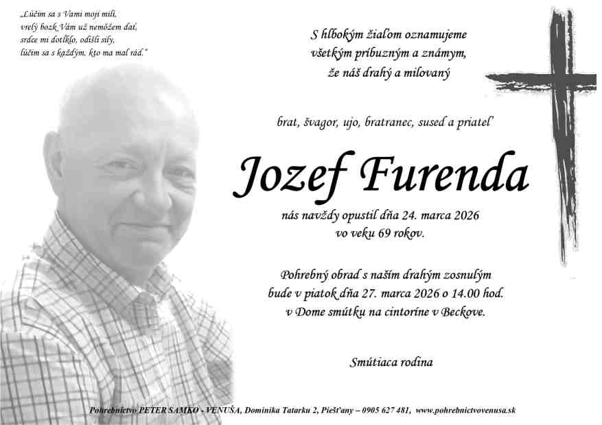 27.3.2026 o 14:00 v Dome smútku na cintoríne v Beckove