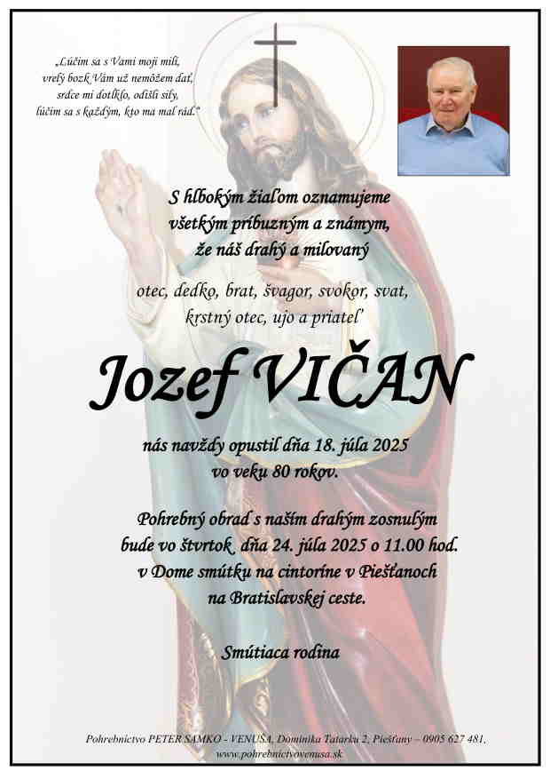 24.7.2025 o 11:00 v Dome smútku na cintoríne v Piešťanoch na Bratislavskej ceste
