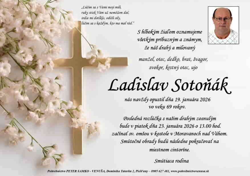 23.1.2026 o 13:00 začína svätou omšou v kostole v Moravanoch nad Váhom, smútočný obrad následne pokračuje na miestnom cintoríne