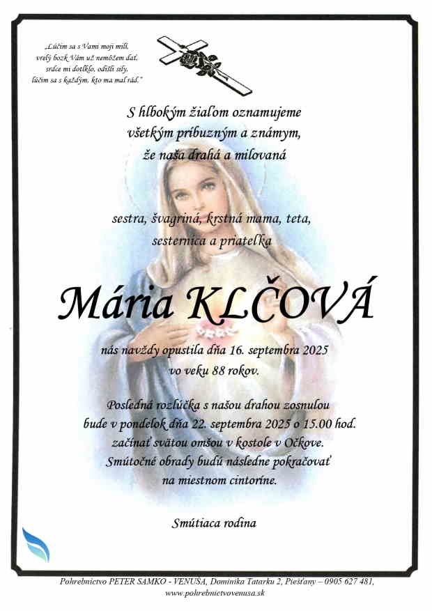 22.9.2025 o 15:00 začína svätou omšou v kostole v Očkove, obrad následne pokračuje na miestnom cintoríne