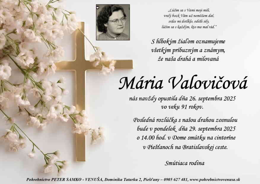 29.9.2025 o 14:00 v Dome smútku na cintoríne v Piešťanoch na Bratislavskej ceste
