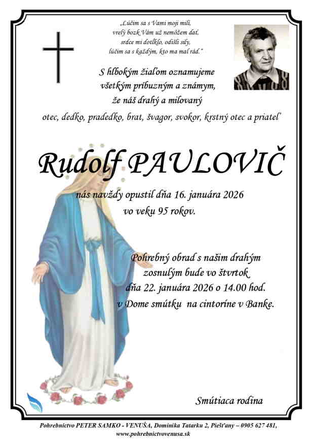 22.1.2026 o 14:00 v Dome smútku na cintoríne v Banke
