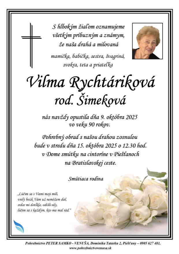 15.10.2025 o 12:30 v Dome smútku na cintoríne v Piešťanoch na Bratislavskej ceste